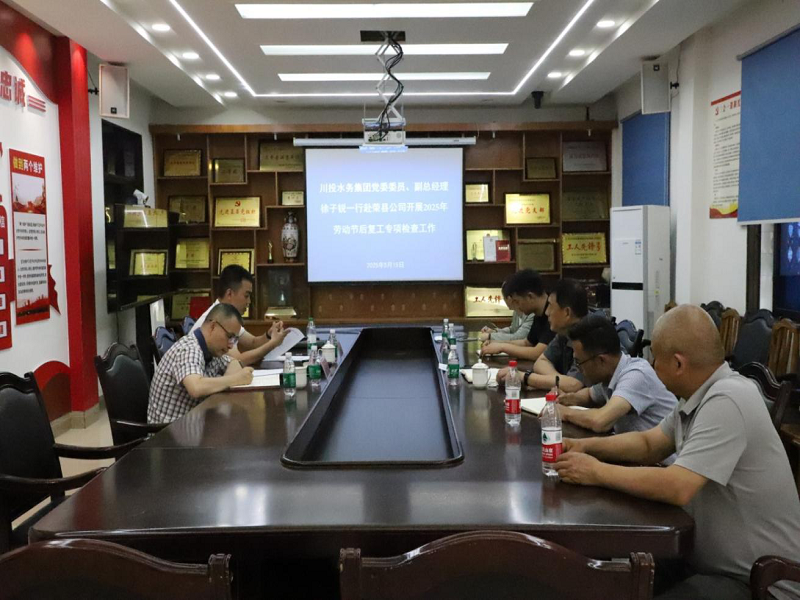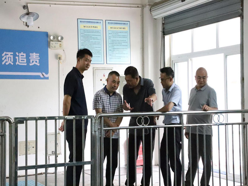 為貫徹全省安全生產(chǎn)調(diào)度會精神,落實四川發(fā)展安全規(guī)范工作部署,5月15日上午,川投水務(wù)集團黨委委員、副總經(jīng)理徐子銳一行赴榮縣公司開展勞動節(jié)后復(fù)工安全專項檢查工作。榮縣公司黨支部書記、董事長、總經(jīng)理龔慶,副總經(jīng)理趙勇及相關(guān)部門負責人陪同檢查。